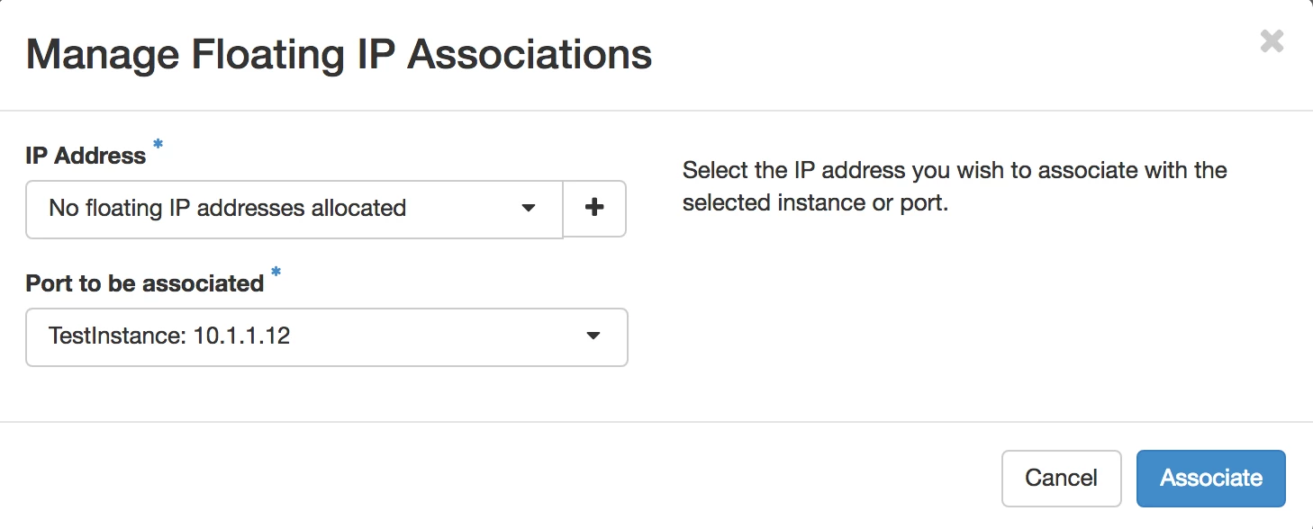 Actiondropdown at the far right and selectAssociate Floating IP