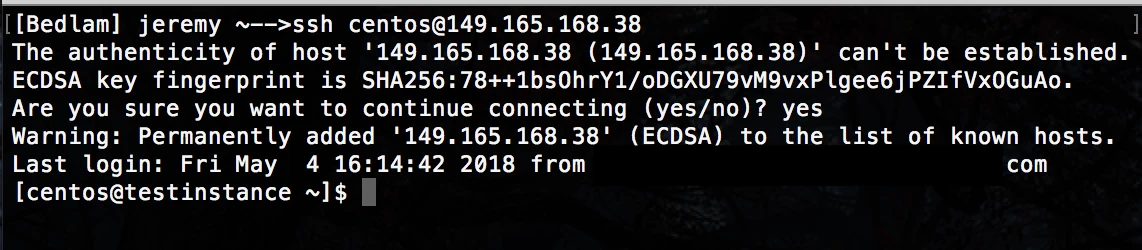 - Note that the first time you connect you’ll get a request to verify that you’re getting a new host key and making sure you want to connect