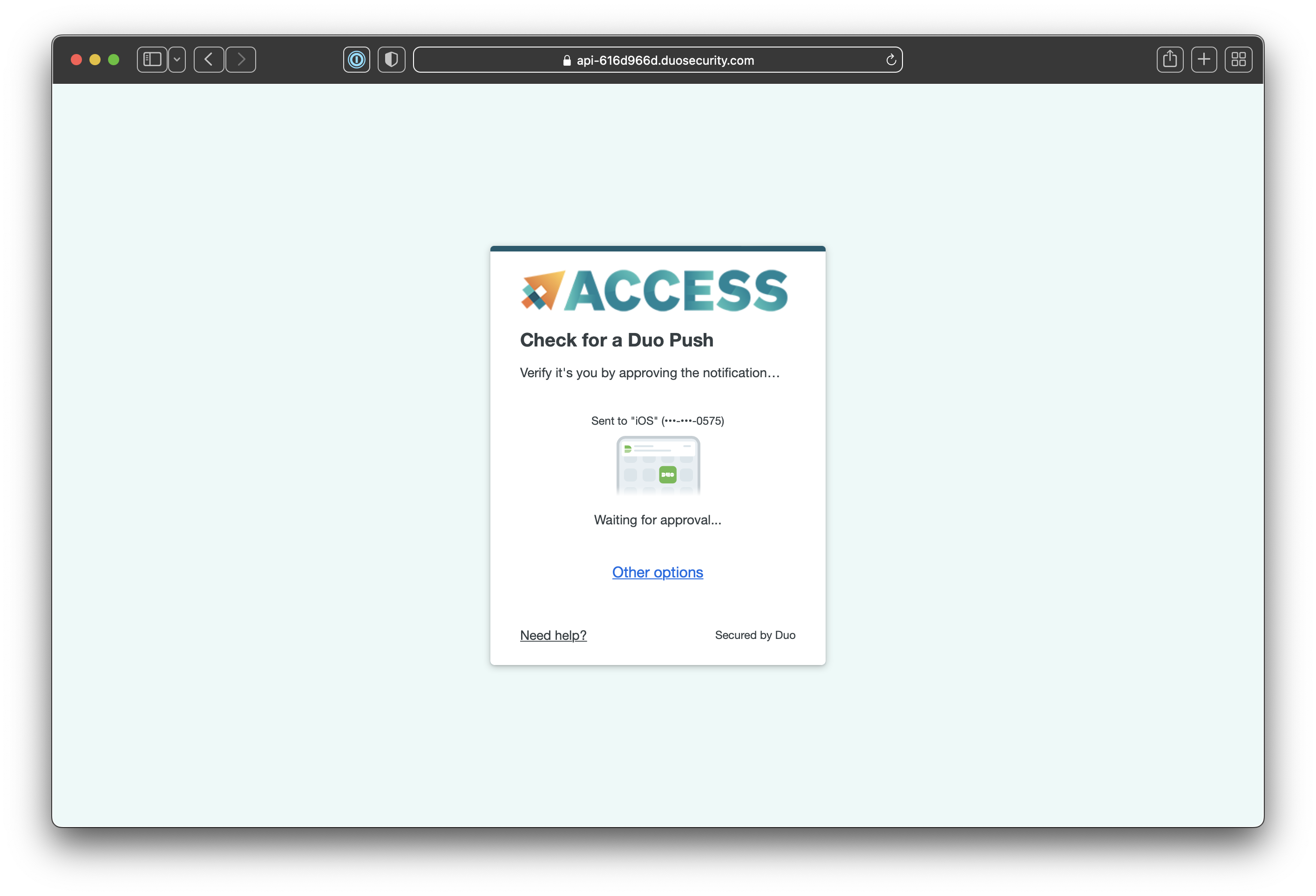 - If you’re using multi-factor authentication with your credentials as ACCESS does, you’ll likely get a Duo or an Authenticator screen here.