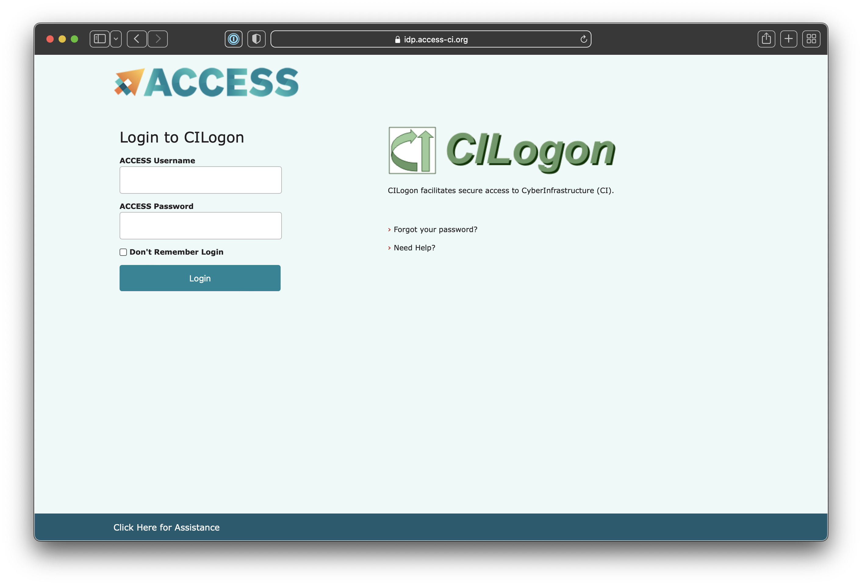 We know ACCESS-CI credentials work correctly so we will show that in our example and recommend using those unless you are 100% sure you have linked credentials PREVIOUSLY in CILogon