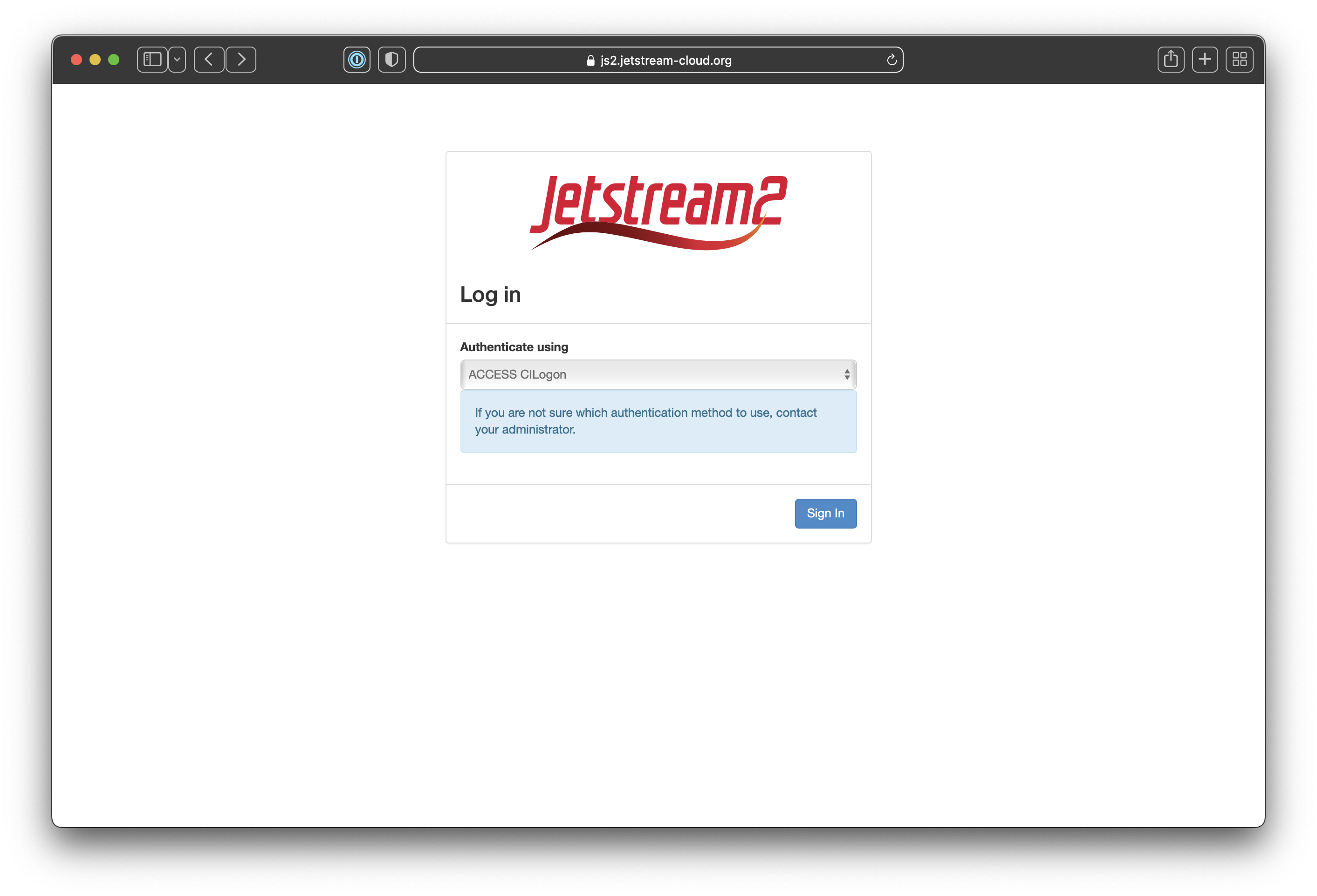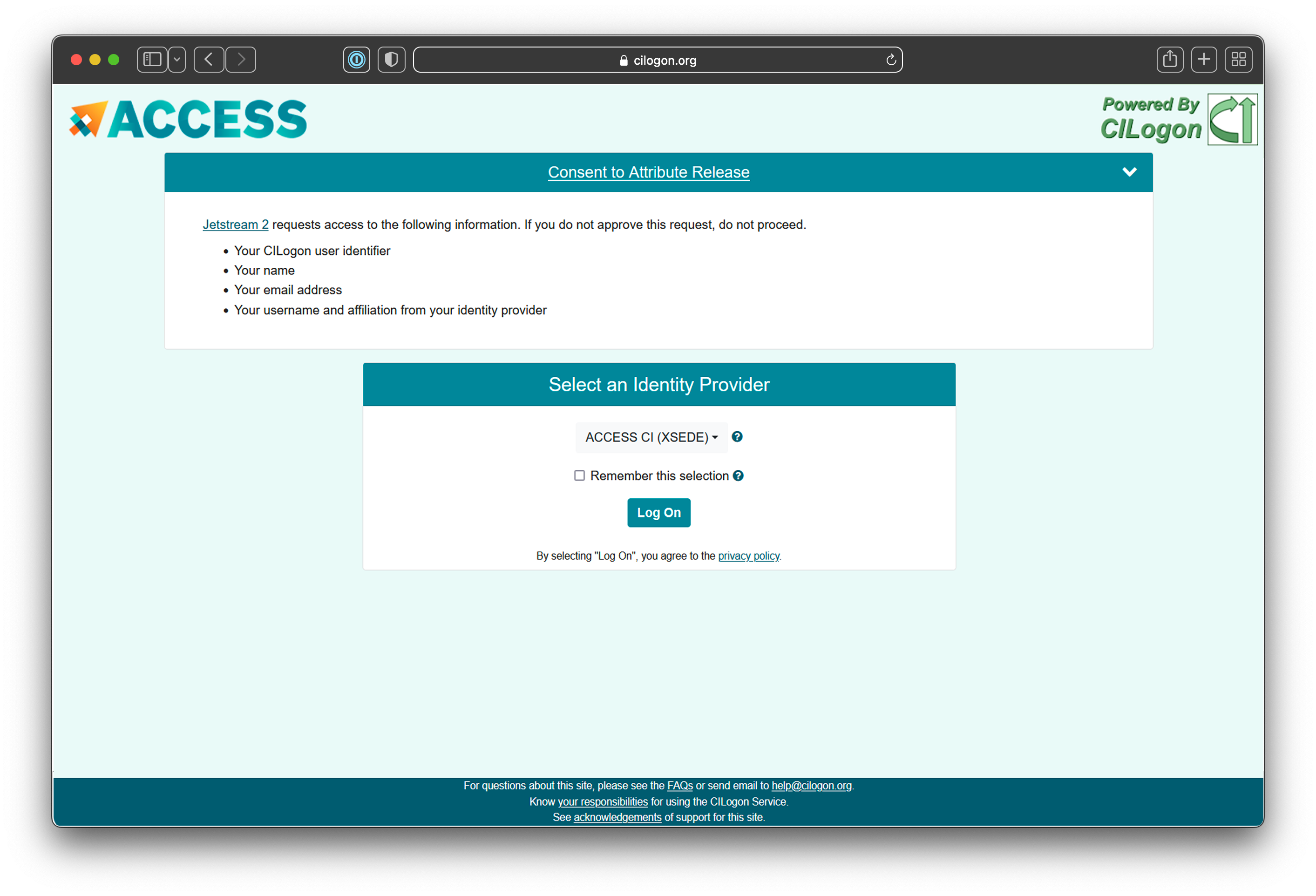- You will be directed to a CILogon page to permit authorization the first time and any time your are using a new browser or your credentials go stale.