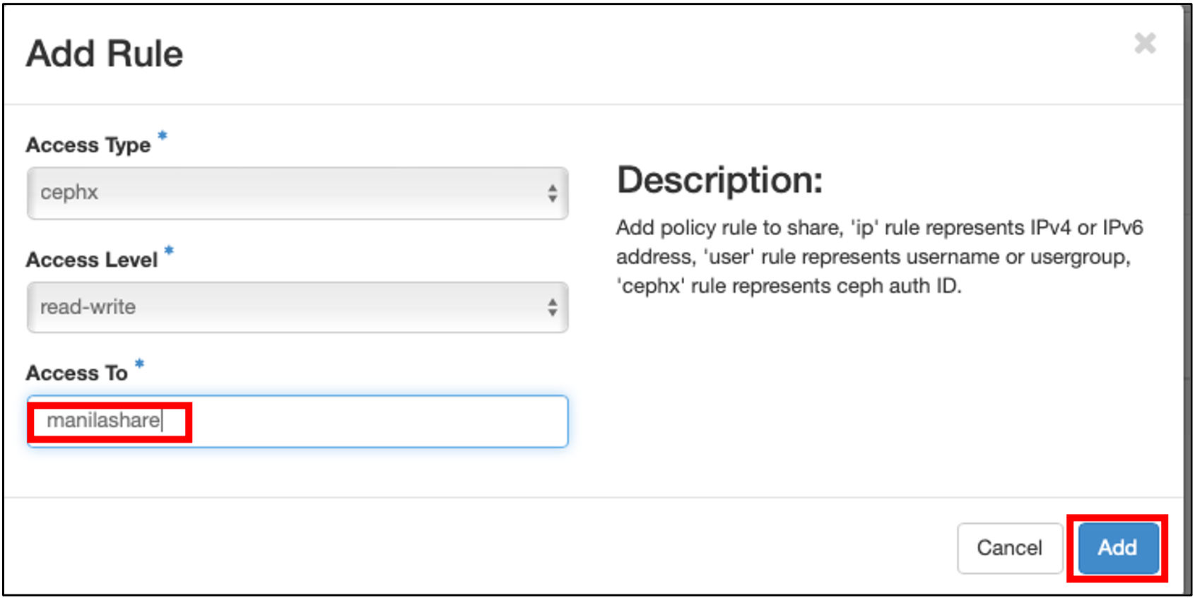 - access type: cephx