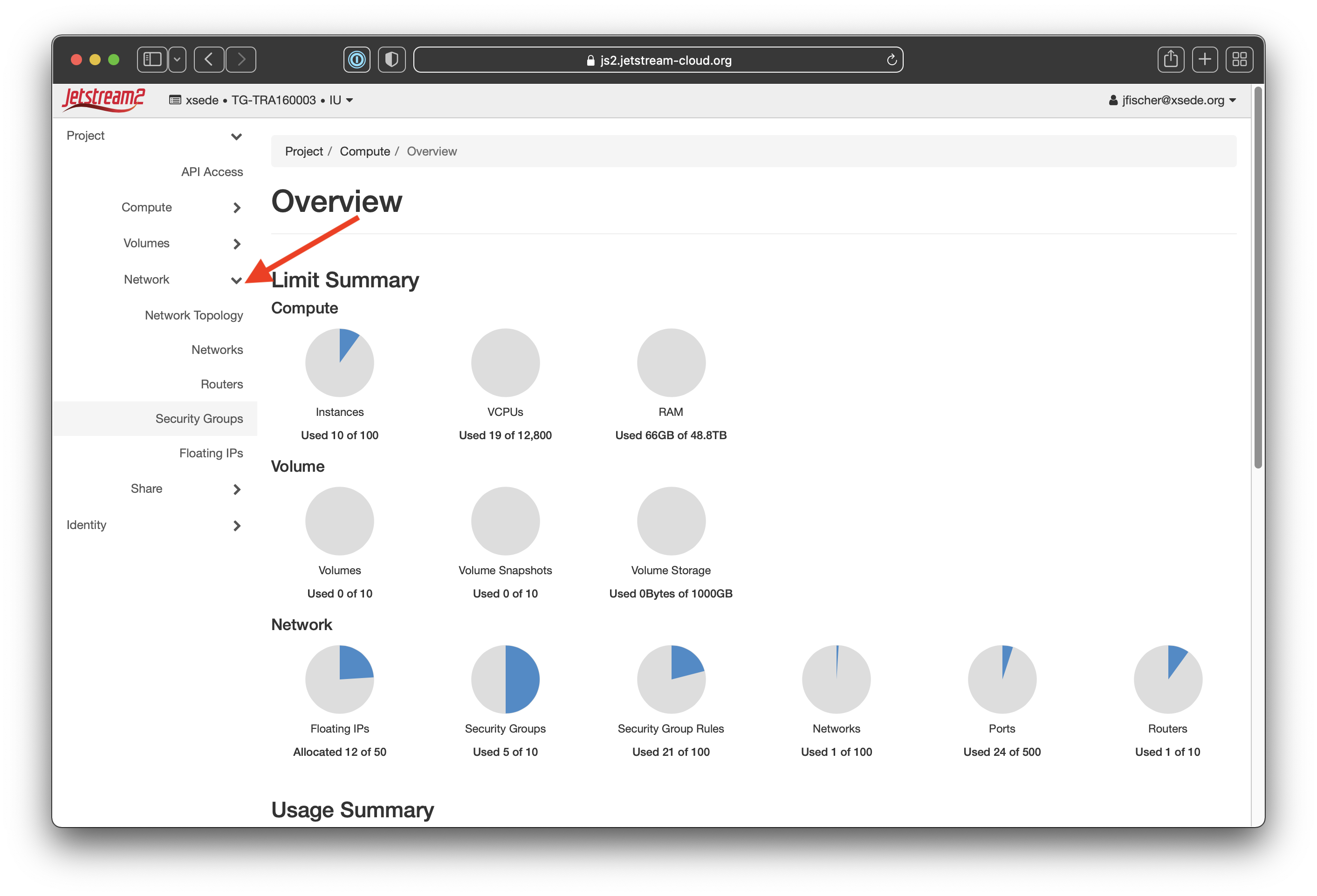 - Login to the Horizon dashboard and make sure you’ve selected the correct allocation. Select the